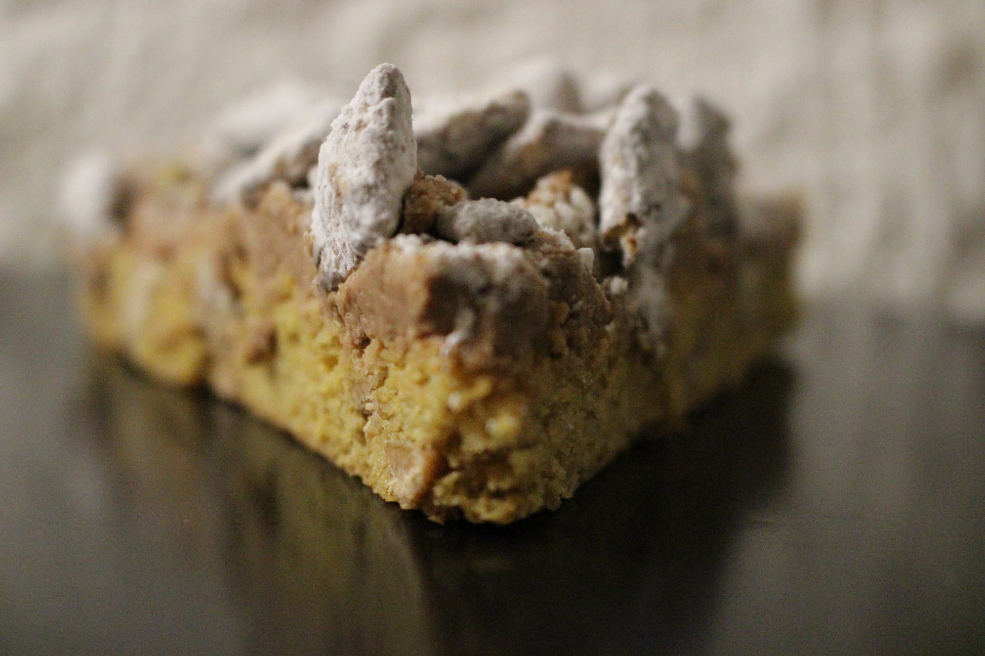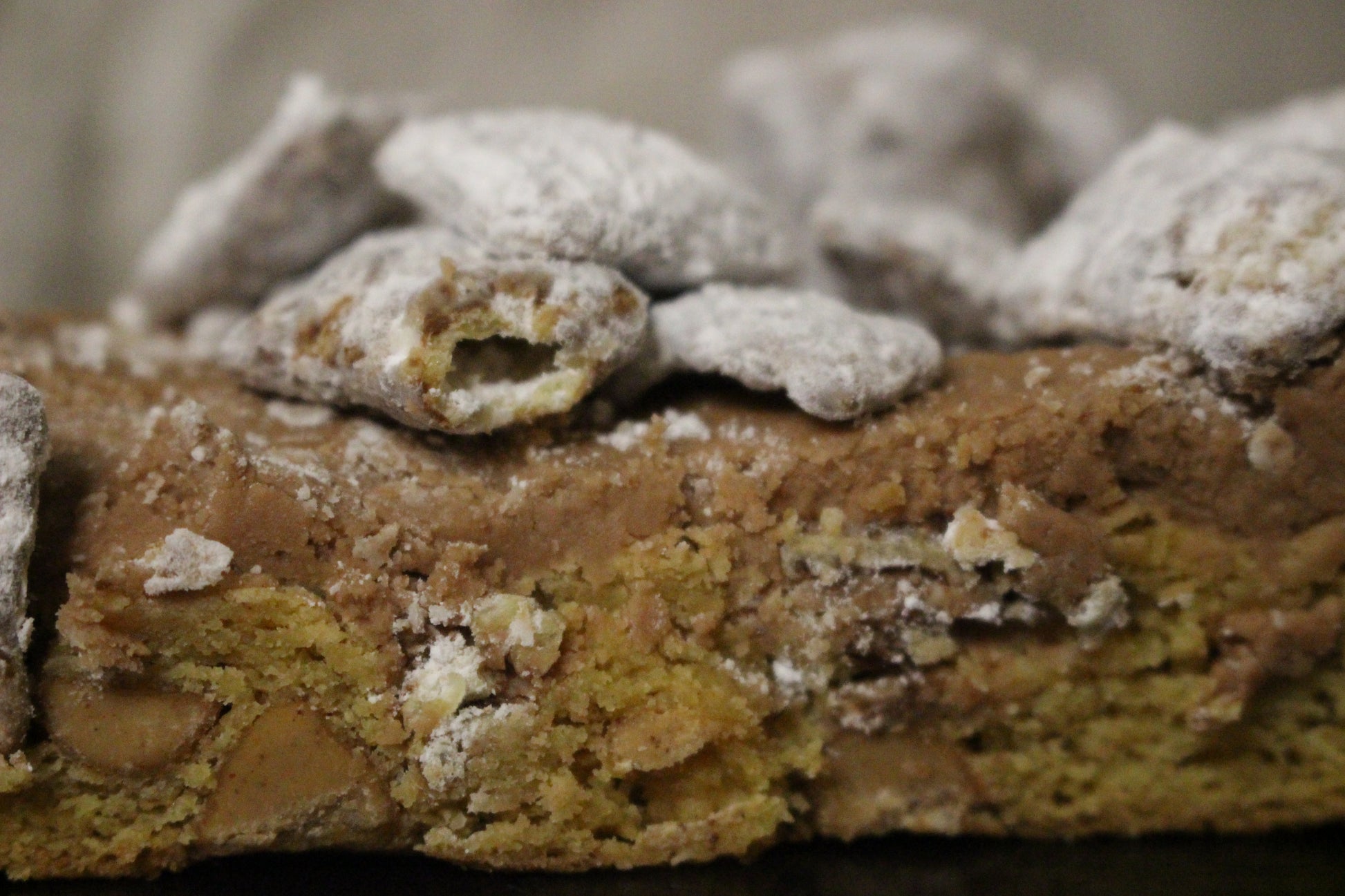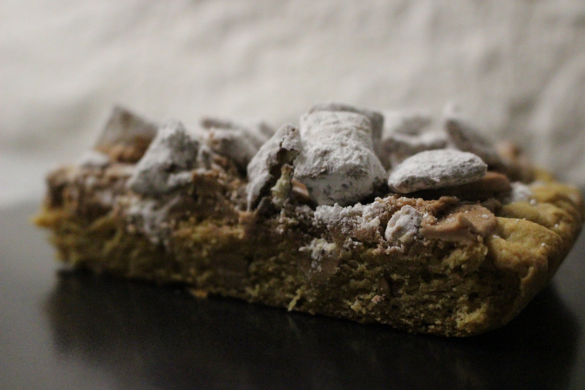 Our peanut butter cookie base lays down a smooth, creamy riff, while the chocolate topping shreds its way across the top like a face-melting guitar solo. But wait - cue the encore! We've covered it all in a crunchy, powdered sugar coated puppy chow for a finish that will leave your tastebuds ringing for more.